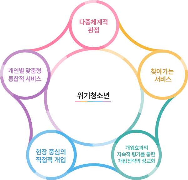 위기청소년을 돕는 전문적인 서비스로서 전문가들이 도움이 필요한 청소년들을 직접 찾아가 지속적인 관계를 맺고 상담, 정서적지지, 기관연계를 제공하는 프로그램입니다.