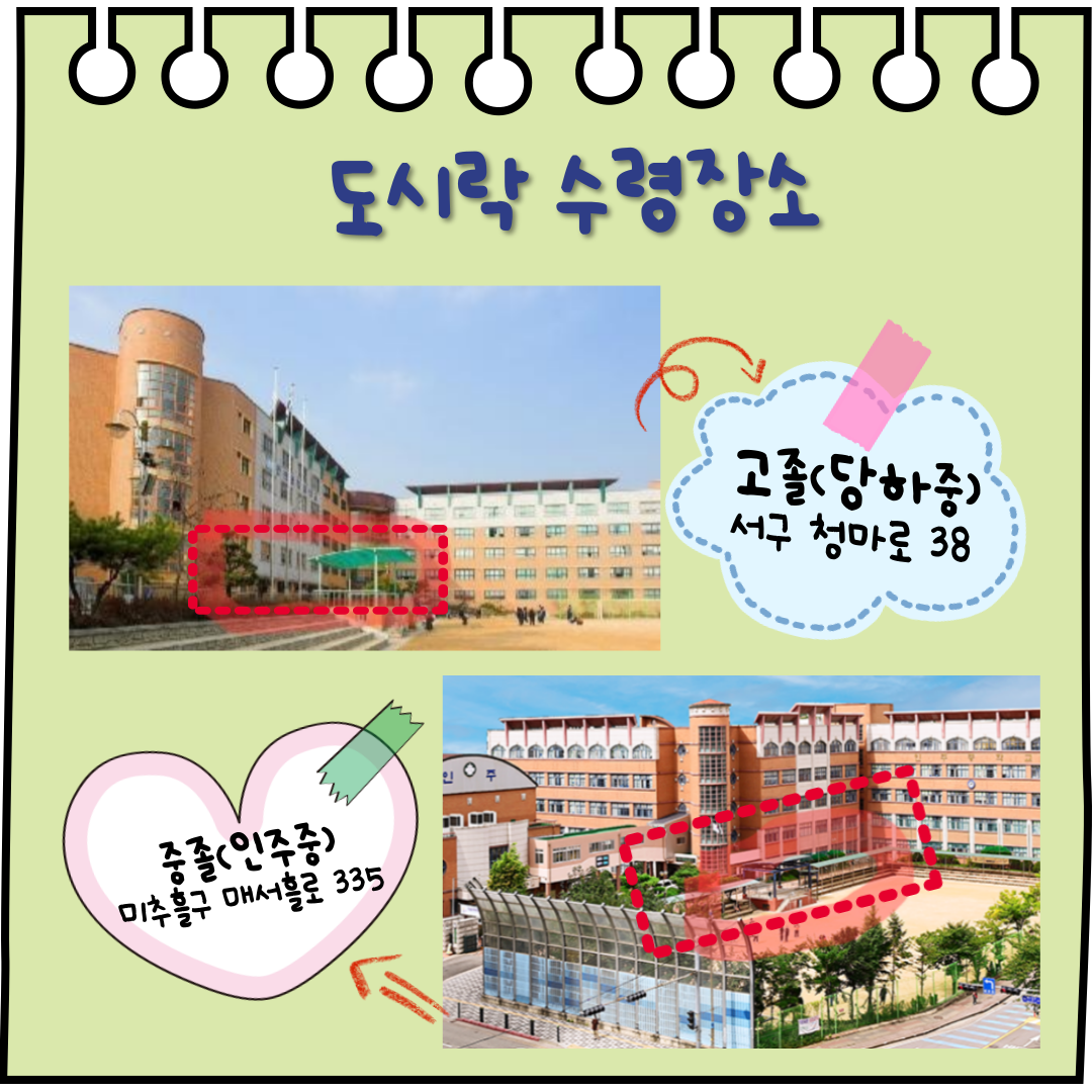 ** 점심시간(12:30) 종 울리면 표시된 장소로 나와서 도시락 수령 후 서명!!